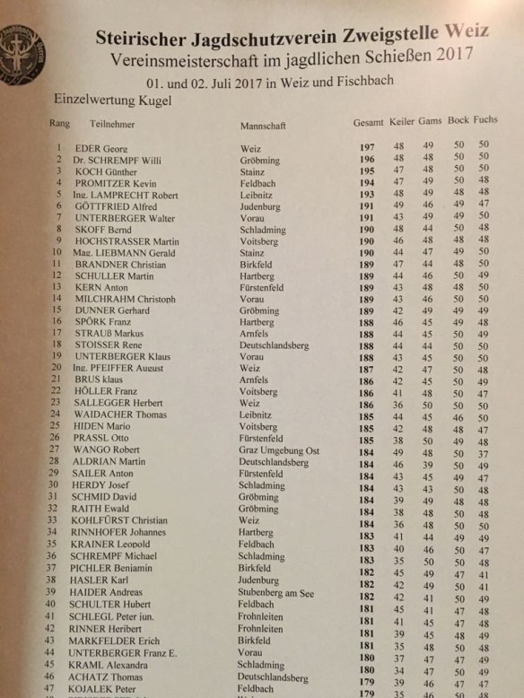 Weiz (Kugel) bzw. Fischbach (Schrot) abgehalten.