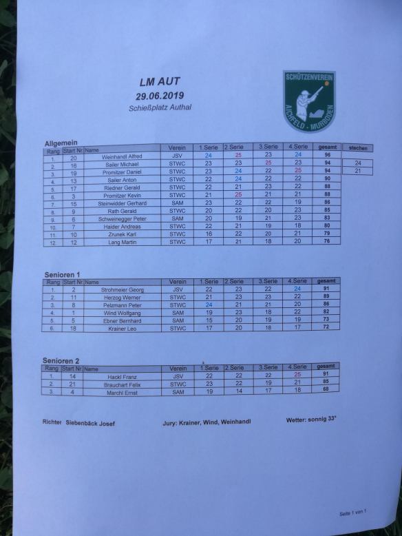 Am vergangenen Samstag 29.06.2019 Veranstaltete der Schützenverein Aichfeld-Murboden (Zeltweg) die Landesmeisterschaft AUT